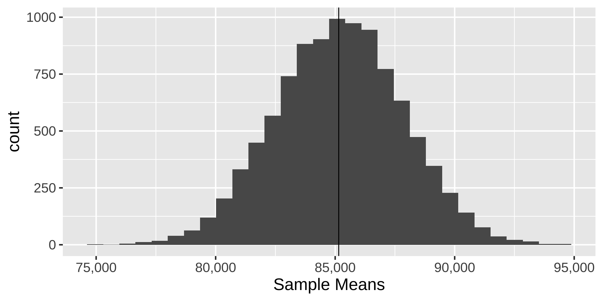 Let’s assume we went ahead and took a (random) sample of LAPD staff and asked their salary information (and they report to us truthfully) and calculated a mean, would we find a mean of 85149.05? Why, why not?