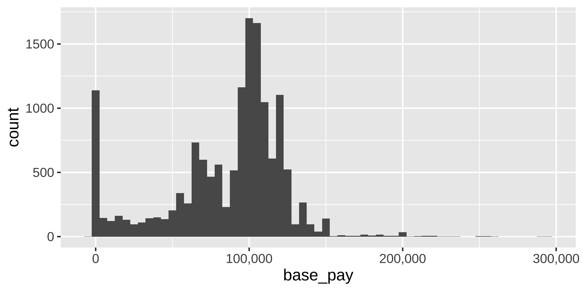 We have data on everyone who worked for LAPD in the year 2018. So the distribution we just looked at is a population distribution. We can go ahead and calculate the population mean ( \(\mu\) ).